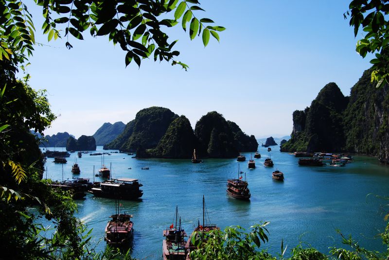 In het noordwesten van Vietnam ligt het prachtige Ha Long Bay. In deze baai vind je ongeveer 2000 vreemd gevormde rotsen die uit de zee rijzen. Deze kalkstenen eilandjes zien er samen met de vele vissersboten die er tussendoor varen schitterend uit. Een aantal van deze rotseilandjes hebben grotten, waar je met een bootje naar toe kunt varen. Sommige eilanden zijn bewoond maar de meeste zijn niet of nauwelijks aangetast. Ha Long Bay staat op de Werelderfgoedlijst van UNESCO, een absoluut terechte vermelding