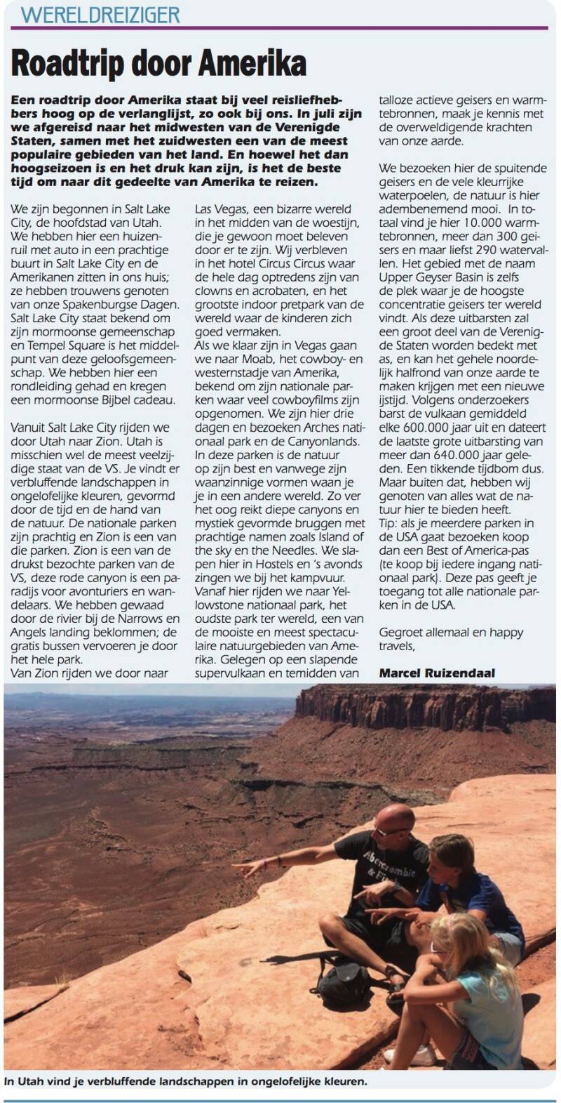 Een aantal artikelen zijn gepubliceerd in weekbladen en kranten zoals de Libelle, Ouders van nu,het KLM magazine en de bunschoterbode. Ook staan er artikelen van de backpackerfamily op verschillende boogsites.